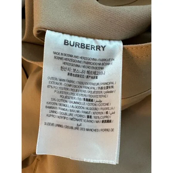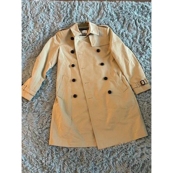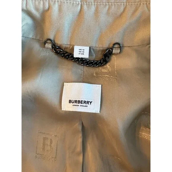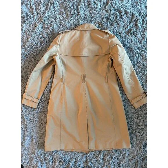 This Burberry trench coat is designed for sophistication and comfort. It features a timeless double-breasted style, ideal for elevating any ensemble. Made with a durable cotton and polyester mix, it ensures long-lasting wear. The classic beige color complements a variety of outfits, enhancing your professional wardrobe effortlessly.• Double-breasted design• Adjustable cuffs• Epaulettes on shoulders• Back vent for ease of movement• Front flap pockets• Chain hanger loop• Signature check liningUS Size 10Size: Womens 10Condition: Pre-Owned Like New