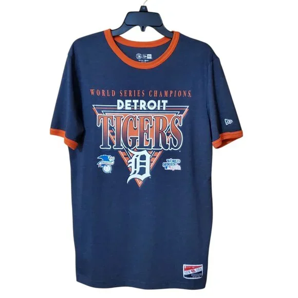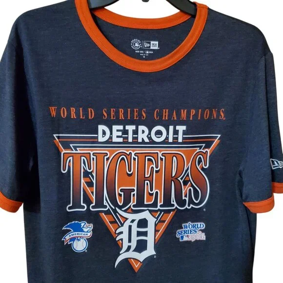 Detroit Tigers T-Shirt Commemorating 1984 World Series Champions Adult Unisex Size MediumI Purchased this Detroit Tigers T-Shirt While at a Tigers Game at Comerica Park Last Year, July 2024, When I Went Home to Michigan. This Shirt Has Never Been Worn. I Wear a Different Tigers T-Shirt I Also Purchased. The Material Blend is Very Soft With a Little Stretch.•Detroit Tigers T-Shirt•Brand: New Era – Major Supplier of Detroit Tigers Apparel•Crew Neck•Blue Background with Orange and White Design•Actual Color May Vary Due to Lighting•Adult Unisex Size Medium•Measurements are Approximate:•Shoulder to Shoulder: 17”•Pit to Pit: 20” Across•Length: 29"•Sleeves: 9 1/2”•Material: 60% Cotton; 40% Polyester•Machine Wash Cold Water on Delicate (Inside Out); Tumble Dry Low•Excellent Loved Condition – Never Worn•Non-Smoking / Pet Free Home