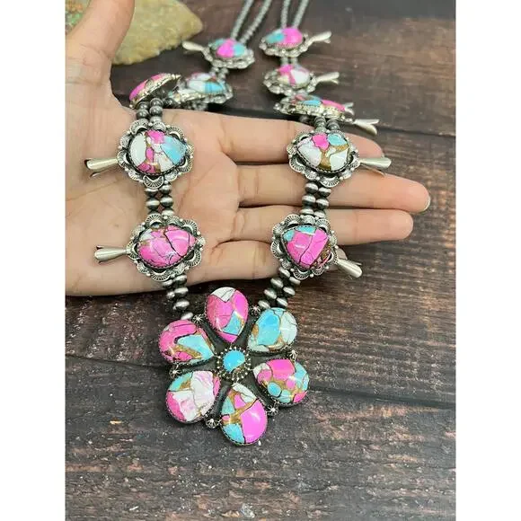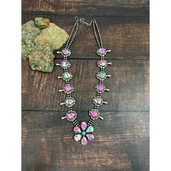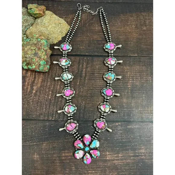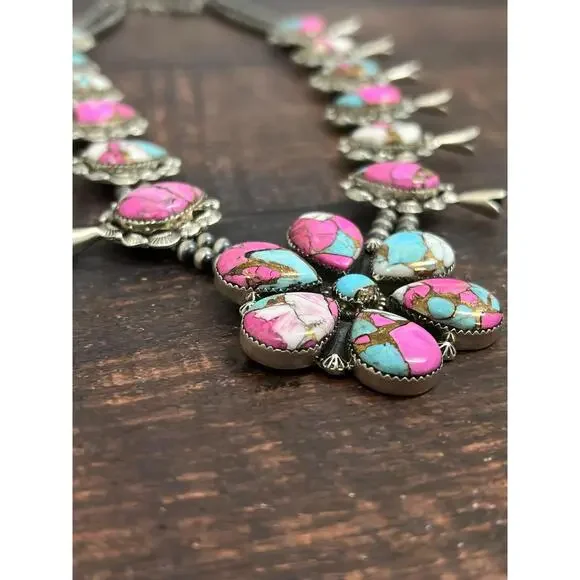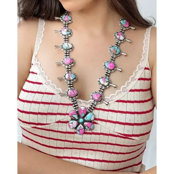 Product Description:* Category: Necklace* Stone: Cotton Candy Turquoise* Metal Purity: 925 Sterling Silver* Handmade: Yes* Brand: Nizhoni Traders LLC Such gorgeous craftsmanship! Sterling Silver Cotton Candy Turquoise Necklace measures Length 26+4" Extension, Width 2" and Bead 2-5mm.Stamped with “Sterling” and signed by Nizhoni.This piece is Non-Native.The stones are natural and may vary.Each listing is for 1 piece only.We truly appreciate your interest in our creations! If you have any questions, feel free to reach out — we’re happy to assist.29may-l6 T60 6/26/25 BM Safe
