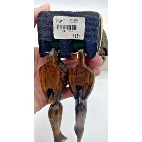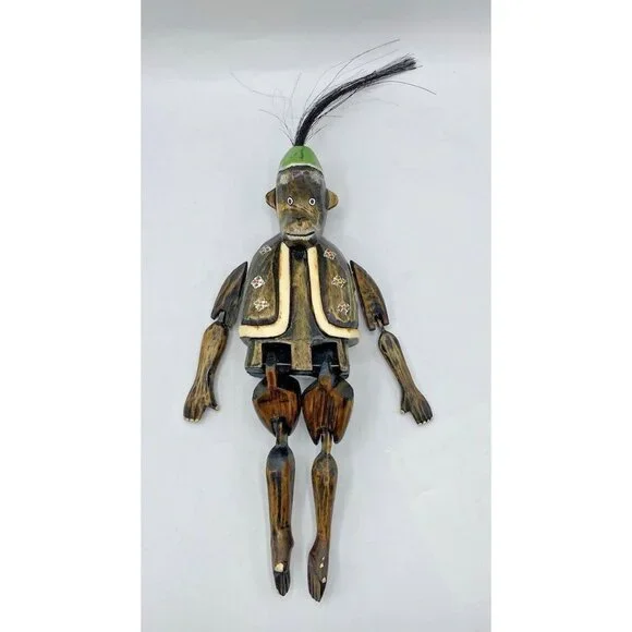 Pier 1 Hand Carved Painted Wood Jointed Monkey Fez Shelf Sitter AnthropomorphicIn Very Good Pre-owned Condition. Chip to the paint of the back of the monkey's head. There are also split ends to the hair strands on the fez. Please see the pictures.Animals & Dinosaurs, Circus, Novelty, Tribal Art, Folk Art, Whimsical, Anthropomorphic, Shelf SitterMeasures; 16 in (with hair) x 5 3/8 inShips from a smoke free home. Check out my closet for more deals. I am happy to create bundles.