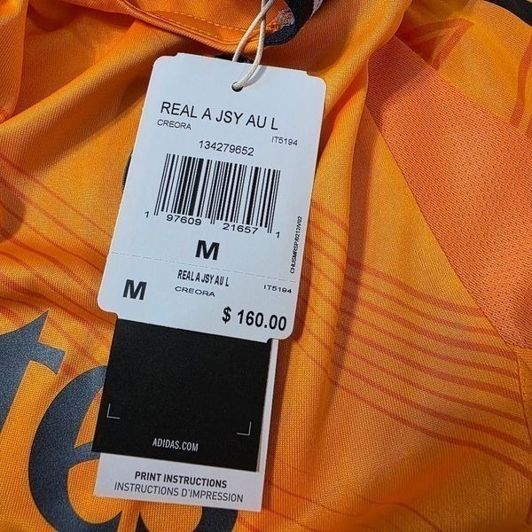 Real Madrid 24/25 Adidas Long-Sleeve Away Authentic Jersey Orange M New IT5194