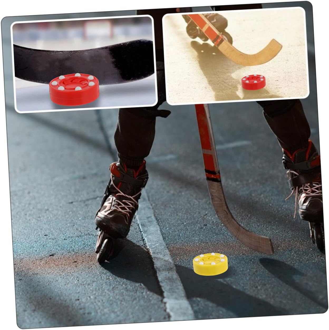Package Include 4 Hockey Pucks Features -Material:PP hockey training -Size:7.50X7.50X3.00cm/2.95X2.95X1.18in street hockey balls -Color:Assorted Color hockey supply -Makes the perfect pastime activity with these pucks. Suitable for and adults hockey competition . -This Ice Hockey is suitable for both skating training and competition use hockey stuff. -The workmanship of this product is perfect, and you will have a good experience in using it roller hockey balls. -Low friction sliding for speeds and consistency on a smooth surface roller hockey . -The practical sports supplies for adults and to practice or game use ice hockey accessory.Goods Descriptionhockey training equipment It's very important to cultivate interest in hockey ball in their early age, and this Ice can not only their physique, but also their flexibility, upper body strength, and ball sense.ice hockey who play hockey ball have a stronger sense of competition, and they are more willing to face and solve problems when they're suffering setbacks