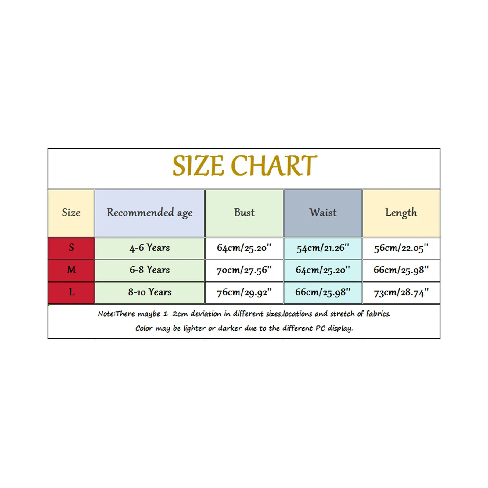 | Size:M | Recommended age:6-8 Years | Bust:70cm/27.56'' | Waist:64cm/25.20'' | Length:66cm/25.98'' |