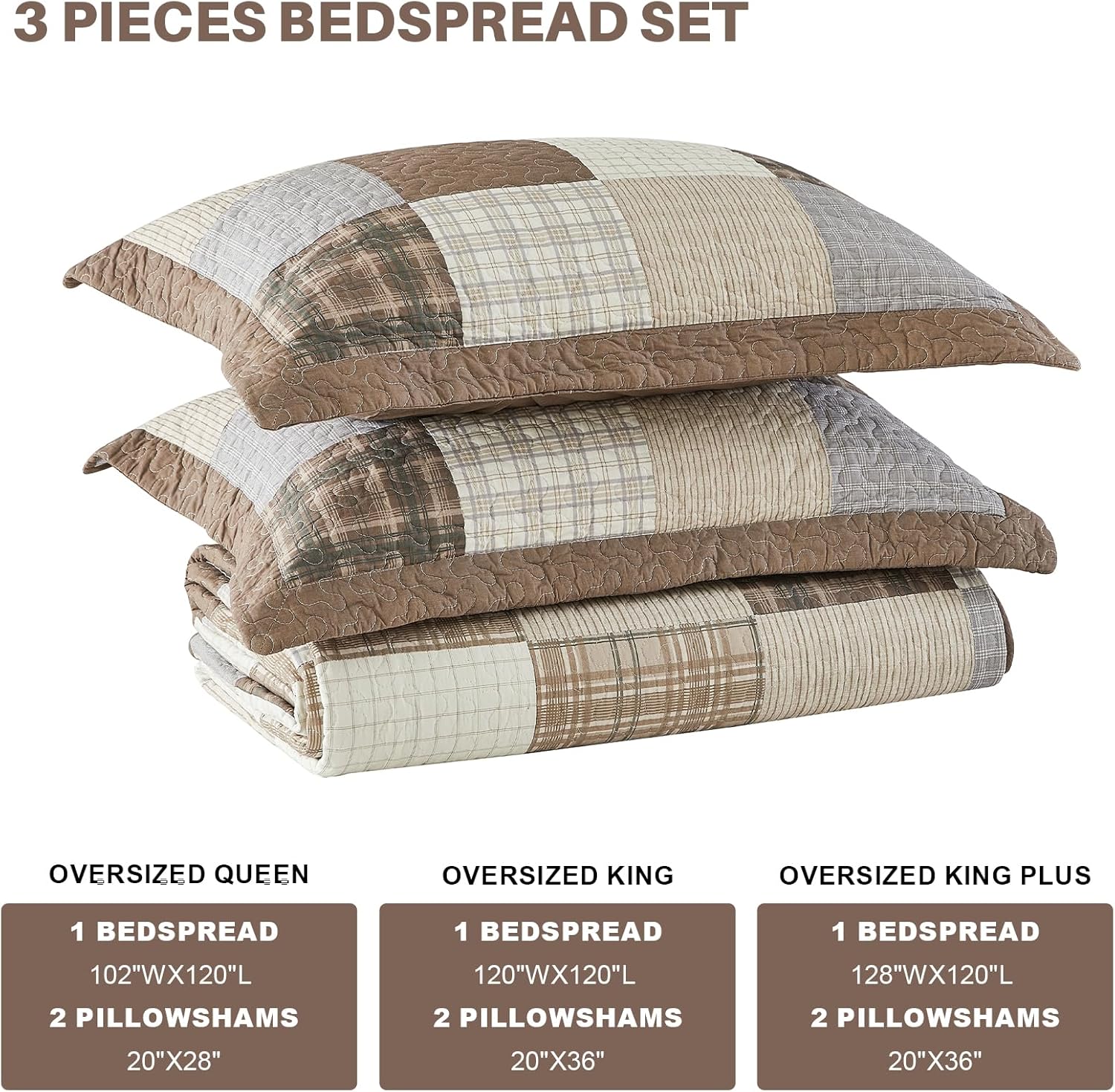 | Included Components | 1 bedspread (120"Wx120"L), 2 pillow shams (20"x36") |