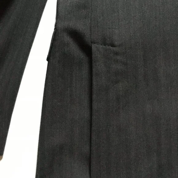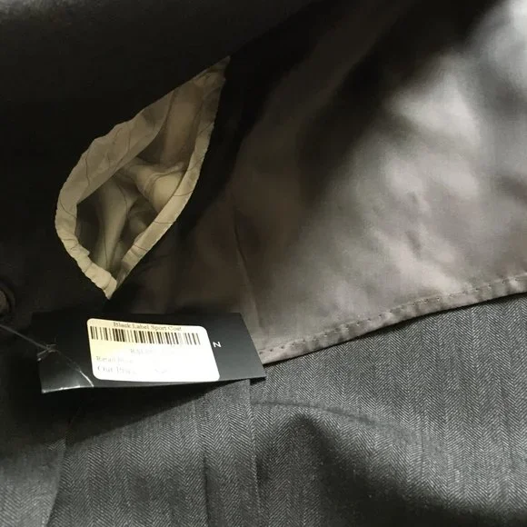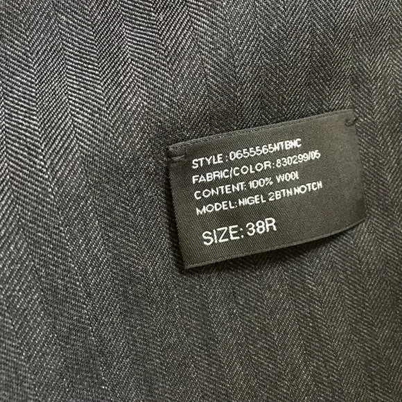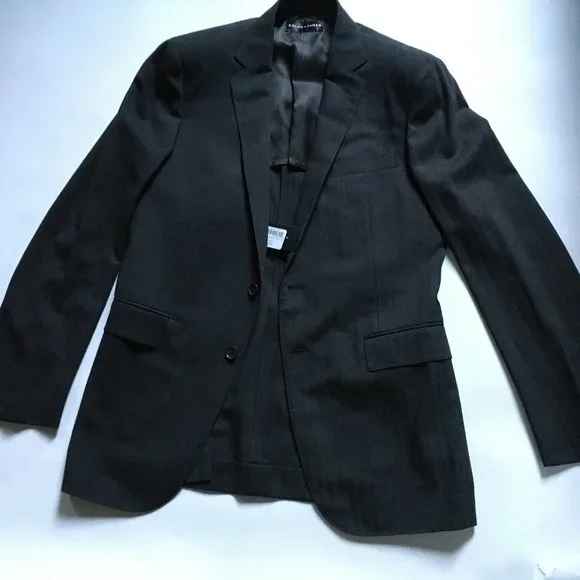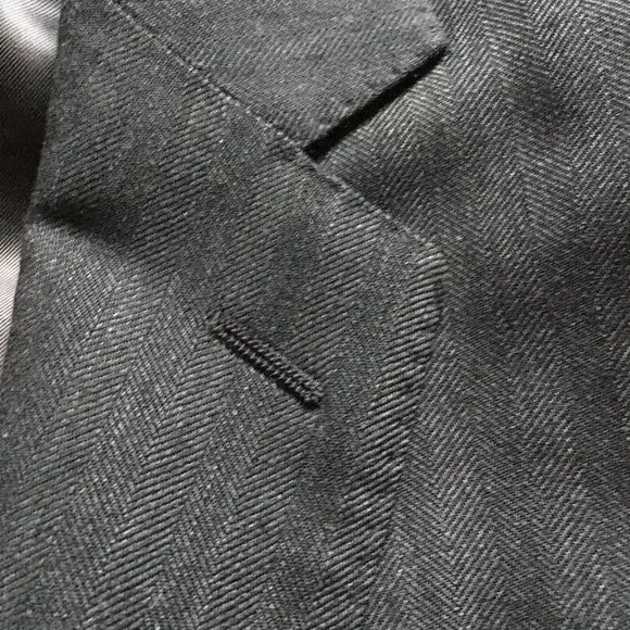 - New Sport Coat: Ralph Lauren Black Label, size 38R (USA) (48R EU), Made in Italy, dark gray, small herringbone pattern, - Fully canvassed construction with floating cotton canvas (no glue/polyester fusing)Link on taking measurements of your clothing to see if this jacket is a good fit:https://propercloth.com/reference/measure-tailored-suit-jackets-sport-coats/Ralph Lauren Black Label Nigel 38R, fully canvassed sportcoat, made in Italy, half lining, dual vents.I have made detailed measurements of shoulder width, chest width, mid-section width, sleeve length, sleeve width, etc.(you can measure a sportcoat that fits you well and compare to this)1. chest width = 19.5" (from underarm to underarm)2. waist = 18" (width at the 2nd button from bottom (at top button in 2 button sportcoat/suit)), also called mid-section width3. shoulder width = 17.5" (between the shoulder seams).4. jacket length = 30" (from base of collar)5. sleeve length = 25""6. Sleeve Width = (1" from armpit, perpendicular to arm) = 7.5"7. Cuff Width = (5.5" at the cuff (opening)8. Lapel Width: 2.7" 9. collar is 1.5" tall Tags:Ralph Lauren Black Label Sport Coat:Retail Price: $1595.00Model Number from tag:Style: 0655565NTBNCFabric/Color: 830299/05Content: 100% WoolModel: Nigel 2BTHNOTCHSize: 38Rpattern, dark grey herringboneMade in Italy, Shell: 100% woolBody lining: 100% cupro (the best)Sleeve lining: 55% Viscose, 45% CuproDry clean, warm iron if needed38R/170/92A