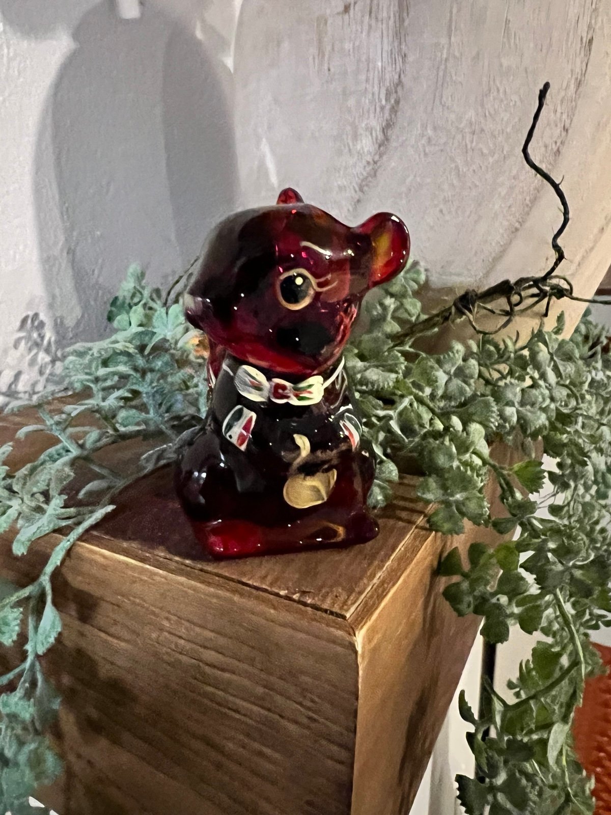 Small Vintage 90’s Fenton Ruby Red Art Glass Squirrel Figurine