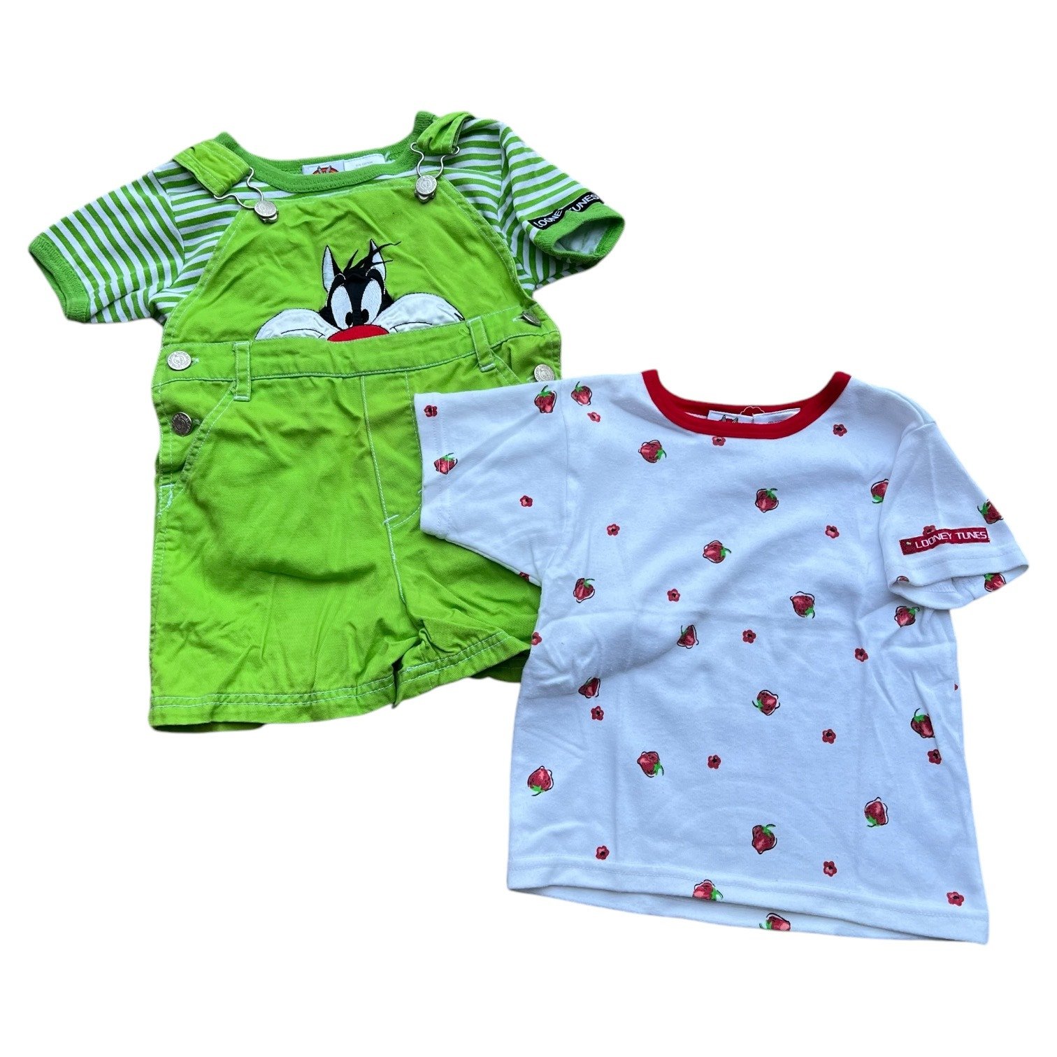 Warner Brothers WB Looney Tunes 1998 90s Overall 2-pc Outfit Set with Bonus Shirt Kids Sz 4T/5